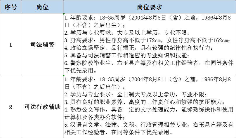 1、司法辅警岗5名(男3名、女2名)