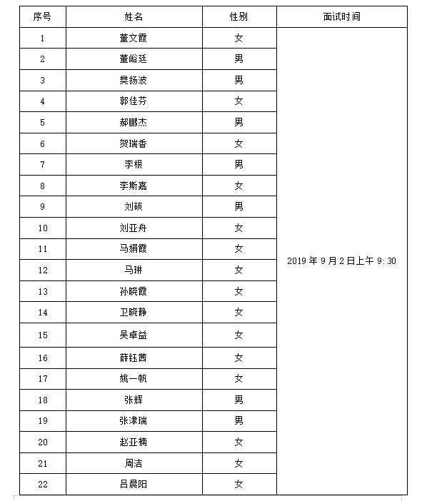 备注:排名不分先后,按参加面试人员姓氏拼音排序。