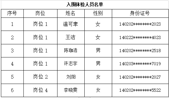 一、入围体检人员名单