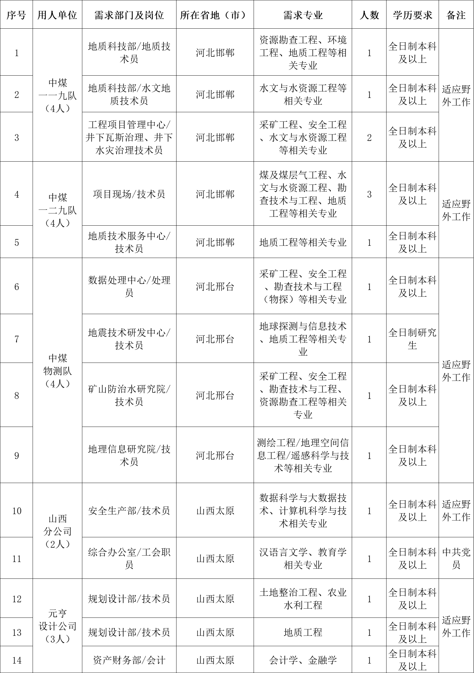 (1)已通过《中国煤炭地质总局2023年度应届高校毕业生招聘公告》(http://ccgc.cn/?mod=zhaopin_detail&id