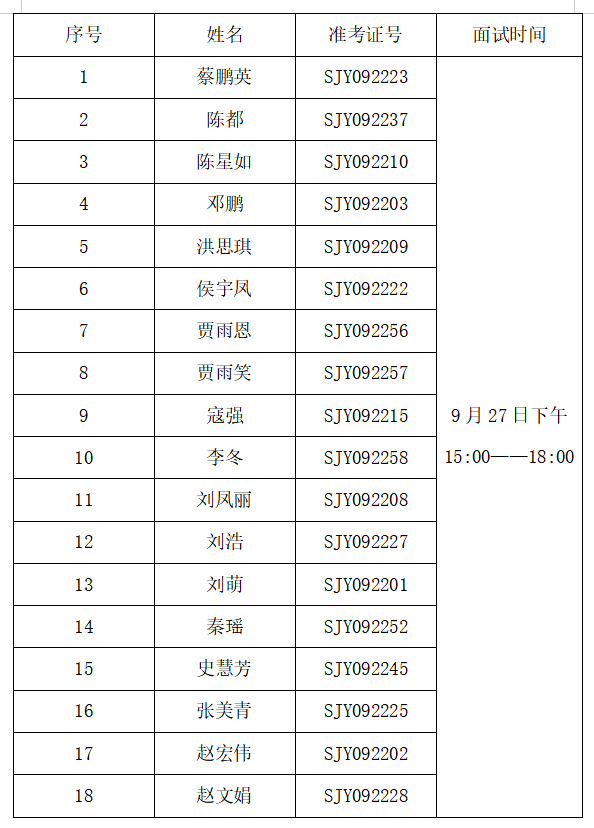 3. 参加面试的考生须在面试前15分钟到考场外的候考区签到。