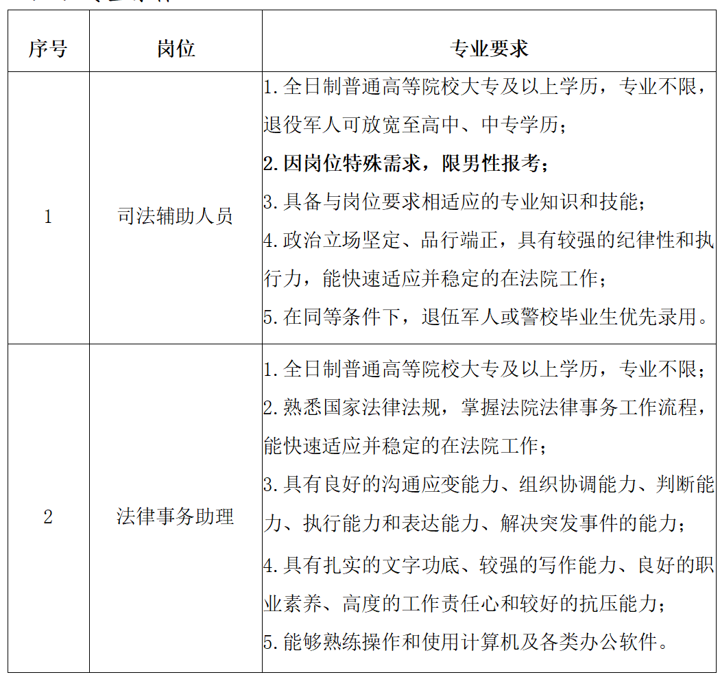 5.服从工作安排,具有法院岗位工作经验者优先录用;