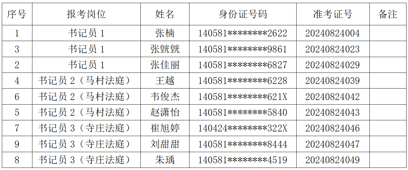 根据太阳成集团tyc138人力资源公司2024年8月7日发布《太阳成集团tyc138人力资源公司招聘3名书记员公告》要求,依据初试成绩从高分到低分的顺序,按计划招聘人数1:3的比例确定参加资格复审的人选,人数未达1:3的按实有人数确定。初试成绩排名末尾出现并列的考生一并进入资格复审环节,现就资格复审有关事项通知如下: