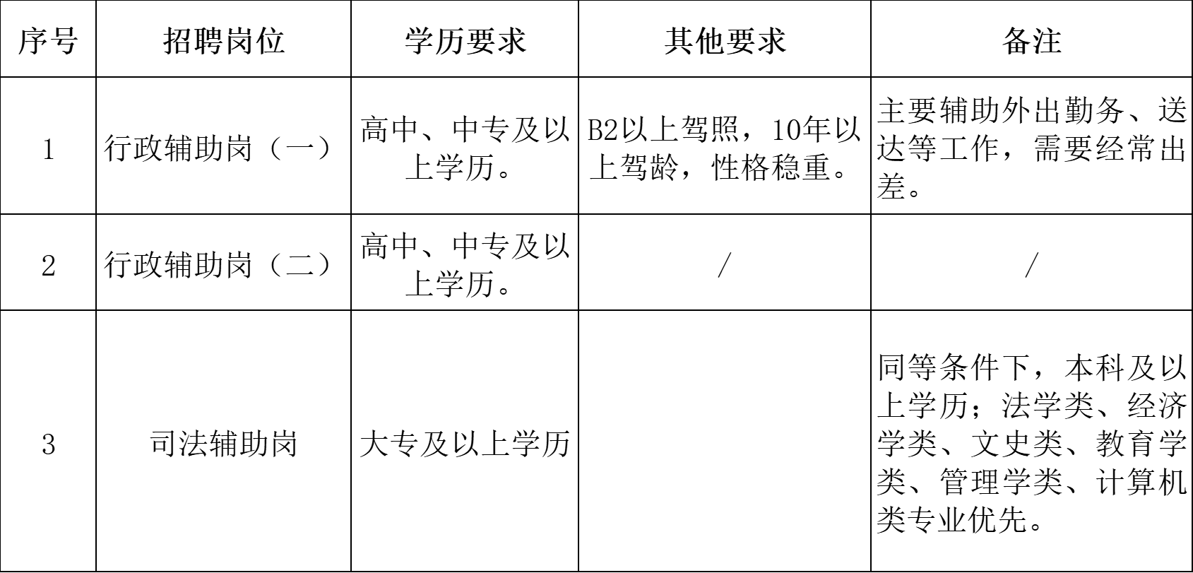 行政辅助岗(二)及司法辅助岗:35周岁以下(1988年8月以后出生);