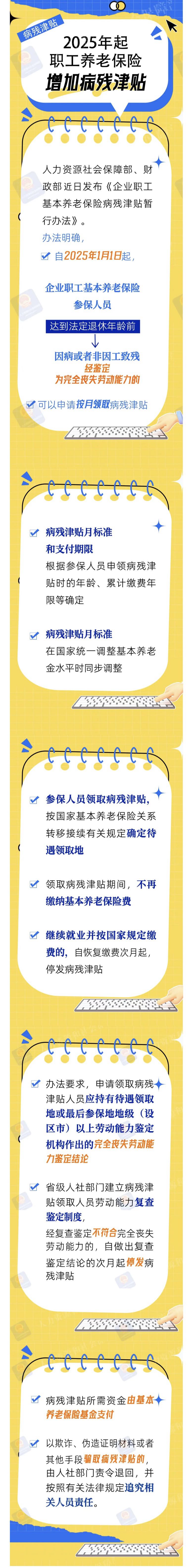 【一图看懂】2025年起职工养老保险增加病残津贴,来看