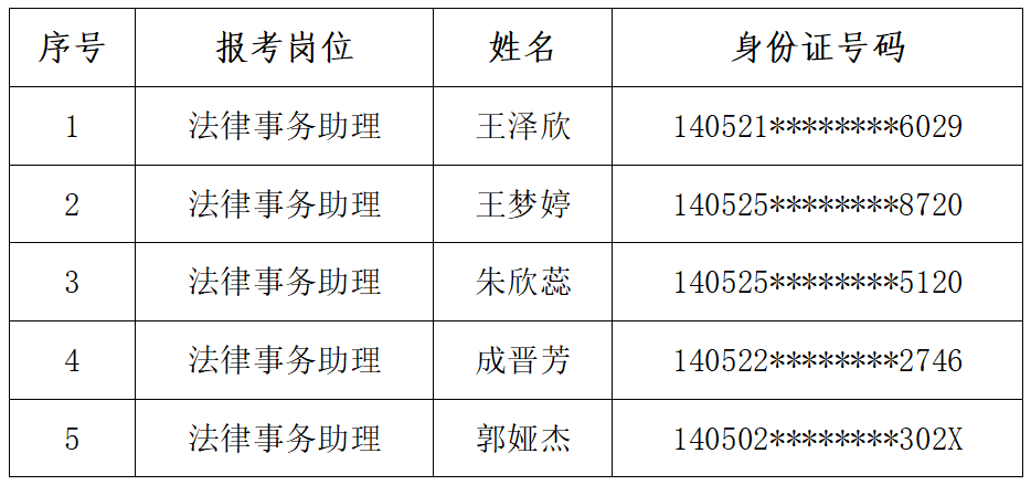 根据太阳成集团tyc138人力资源公司2025年2月17日发布的《晋城市城区人民法院招聘法律事务助理公告》要求,经过网上报名、资格初审、笔试、资格复审、面试等环节,现就体检有关事项通知如下: