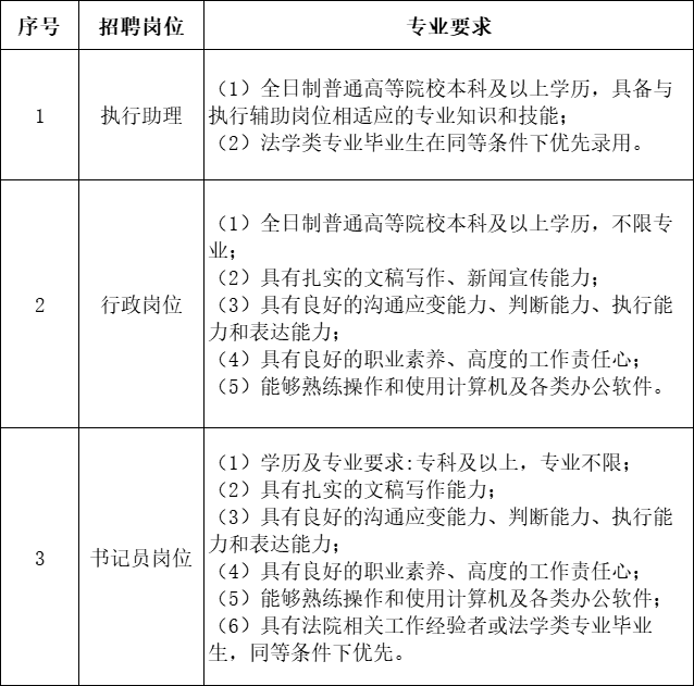 5.热爱法律工作,同等条件下,法学专业优先录用。