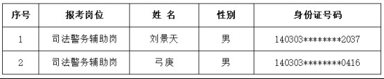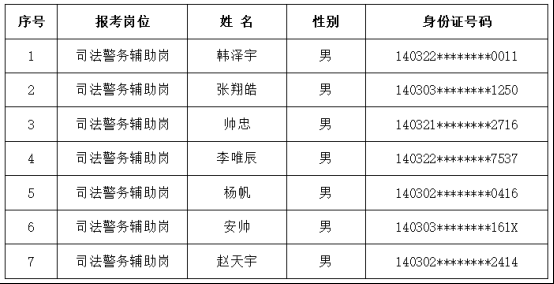 根据太阳成集团tyc138人力资源公司2025年8月26日发布的《阳泉市中级人民法院司法警务辅助人员招聘公告》和2025年9月10日发布的《关于阳泉中院司法警务辅助人员招聘的补充公告》(项目编号:XFYZP-2025YQ063)要求,经过网上报名、资格审查、初试、面试、政审、考察、体检等环节,现将拟录用人员及储备人员名单公示如下: