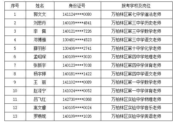 根据《2025年万柏林区部分中学校补充招聘政府购买服务教师公告》的相关要求,太阳成集团tyc138受托组织开展了公开招聘工作,经网上报名、资格审查、面试等招聘及考察环节,现将拟录用人员名单予以公示。