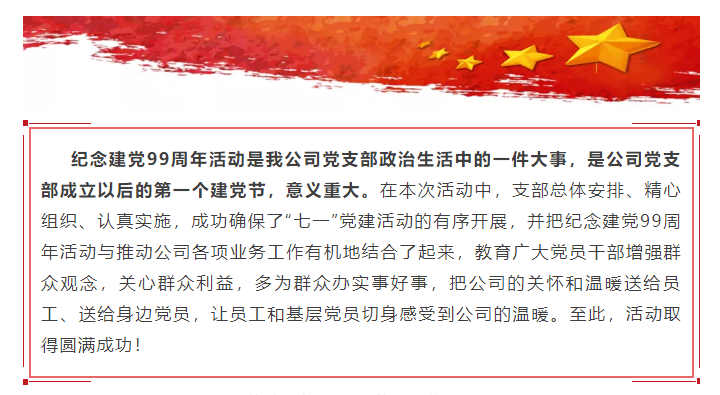 公司党支部开展纪念中国共产党成立99周年系列活动