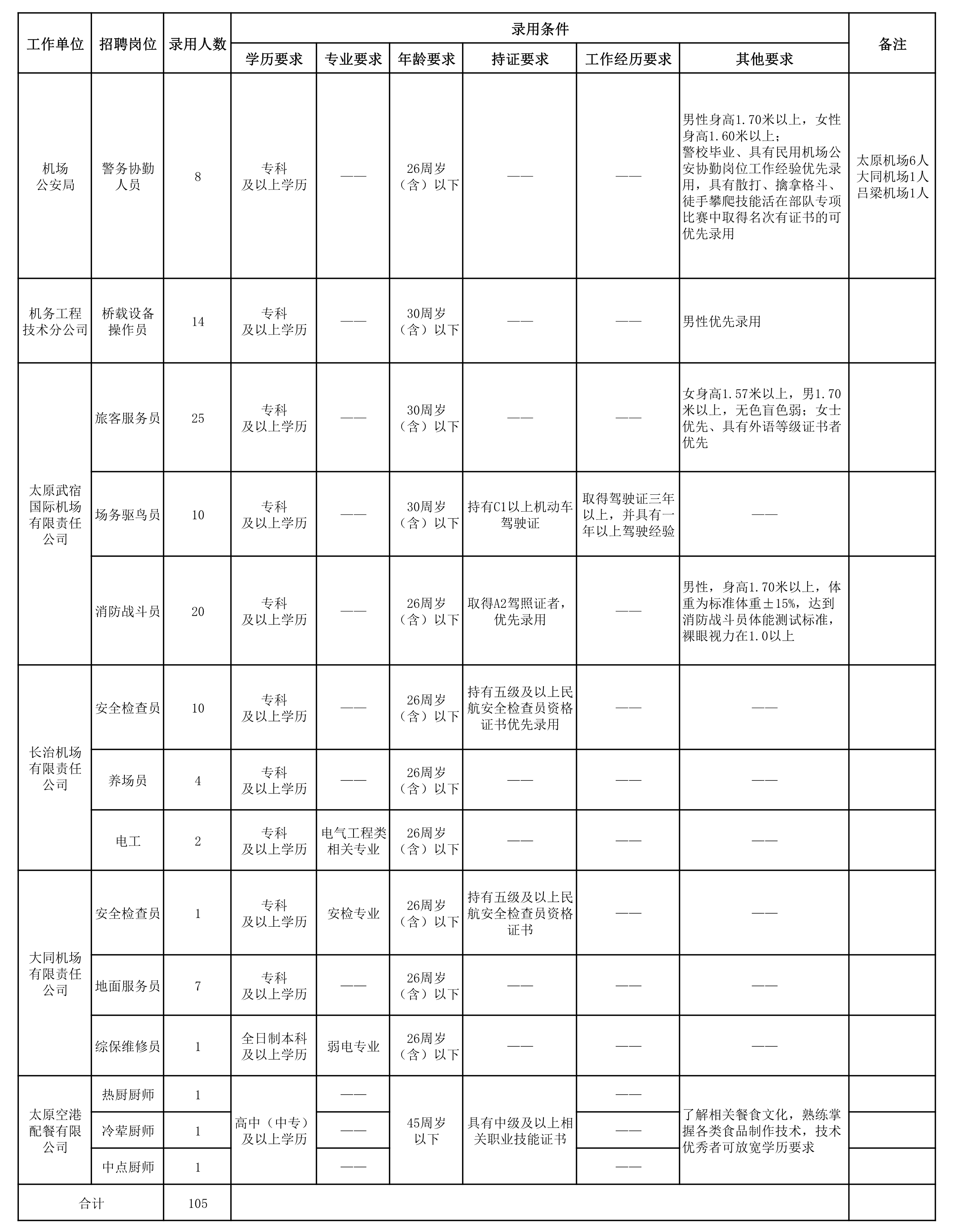 4、符合山西航产集团新员工录用体检标准;