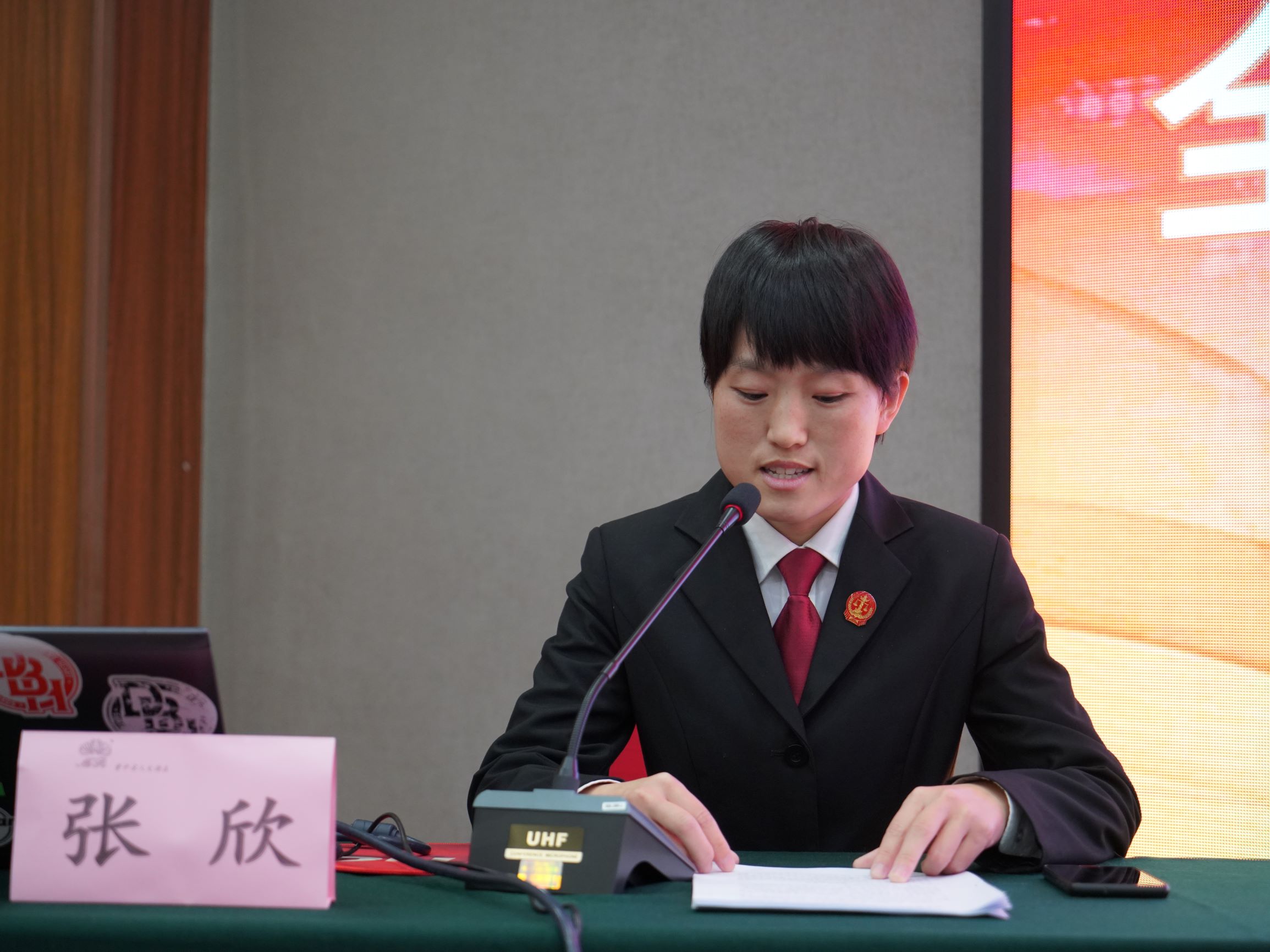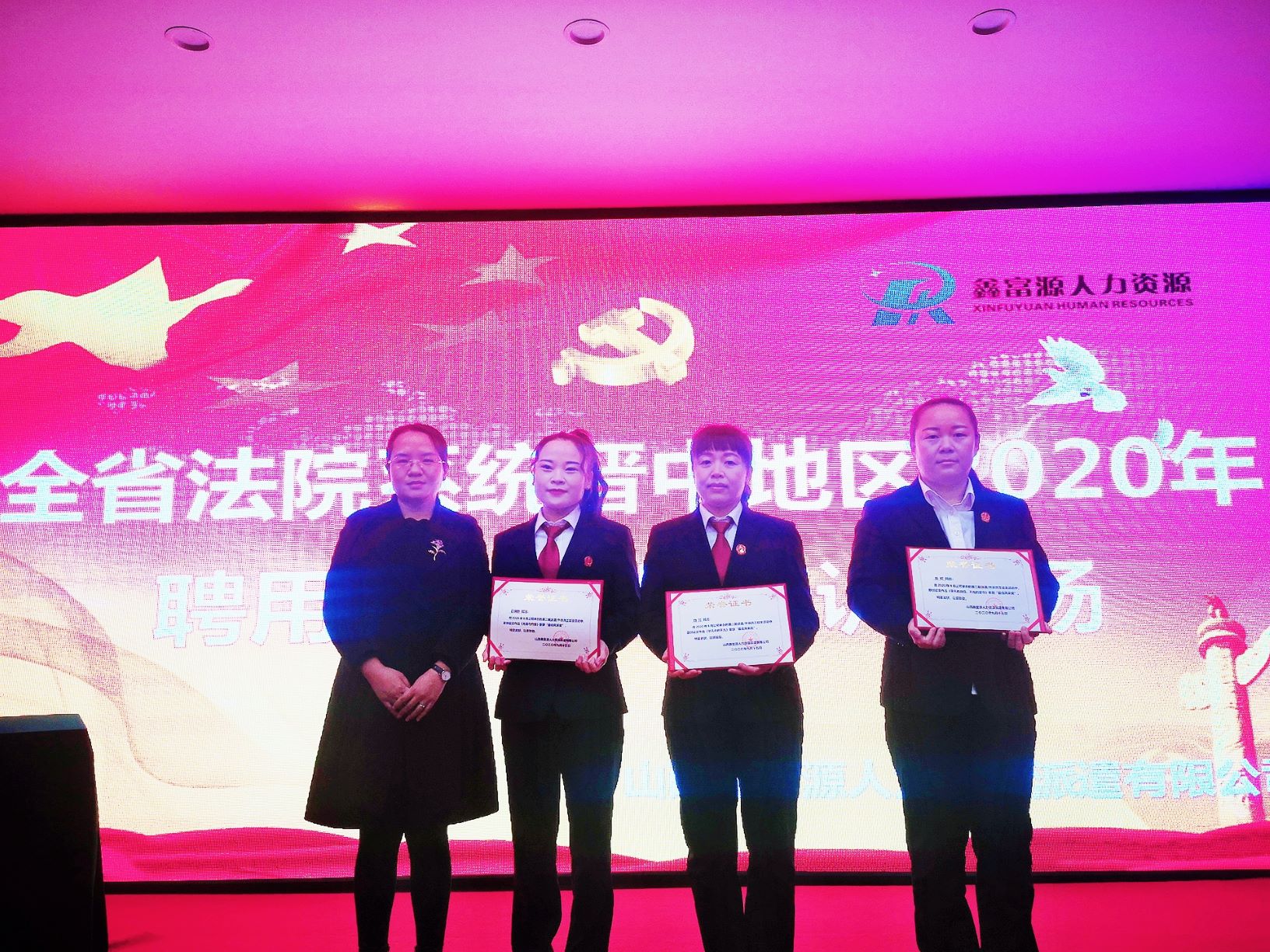 郭总监为在公司征文活动中获奖的聘用制书记员石祺影(太谷区法院)、白兰(太谷区法院)、岳昕(榆社县法院)颁发荣誉证书