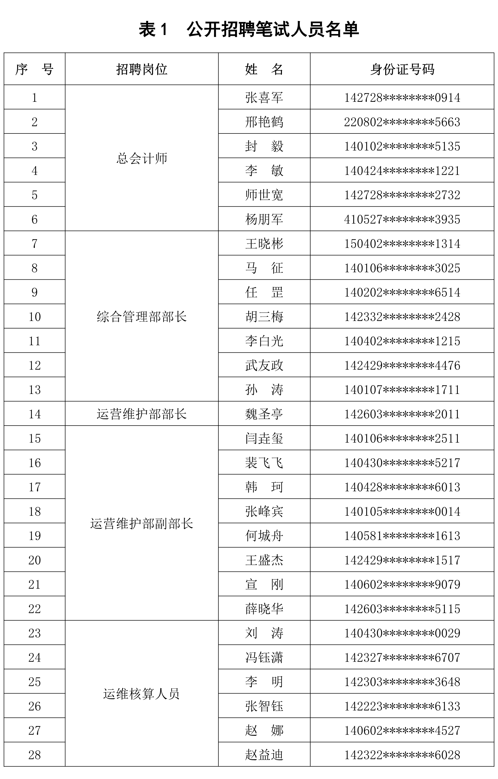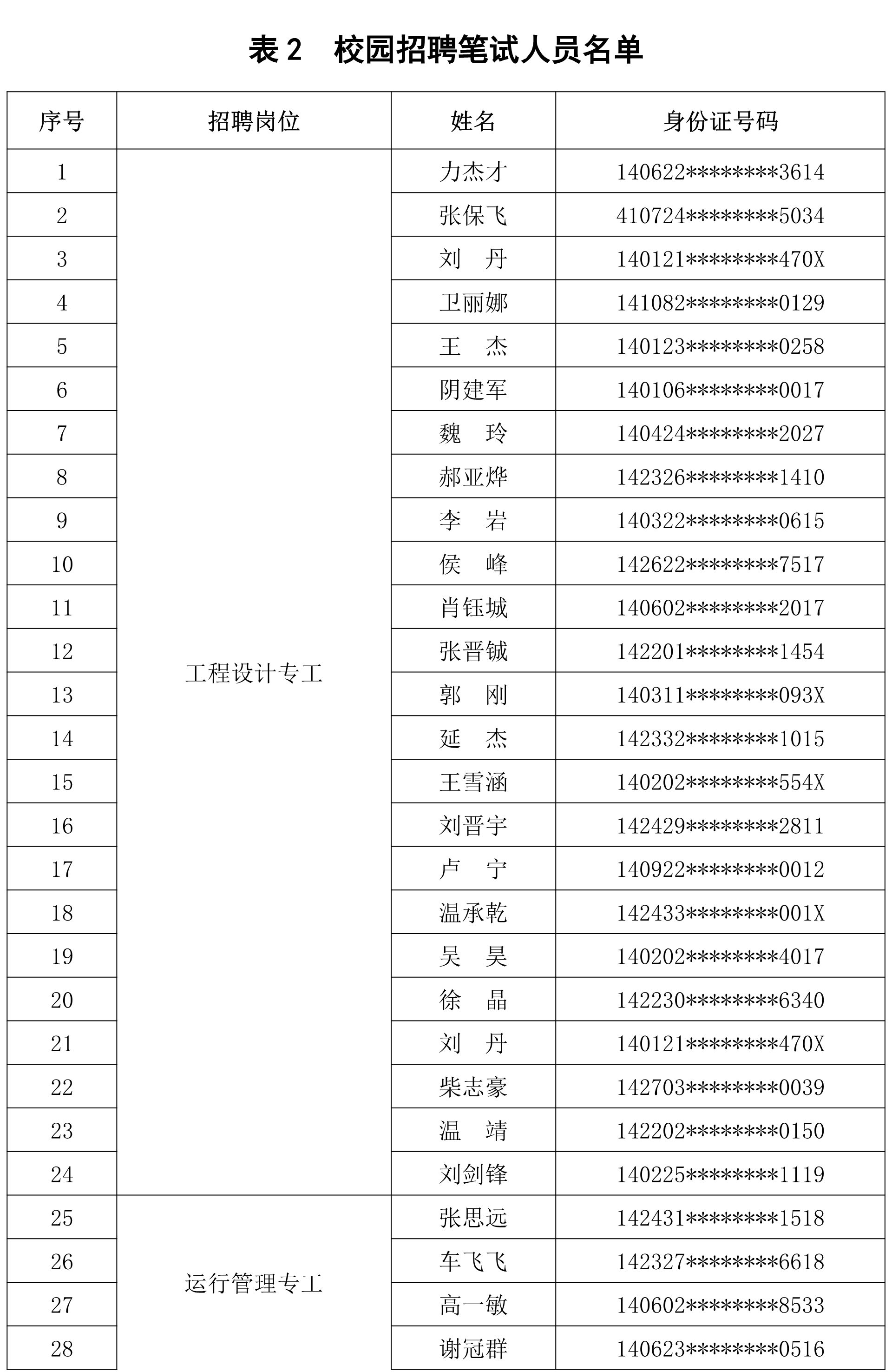 一、入围笔试人员名单