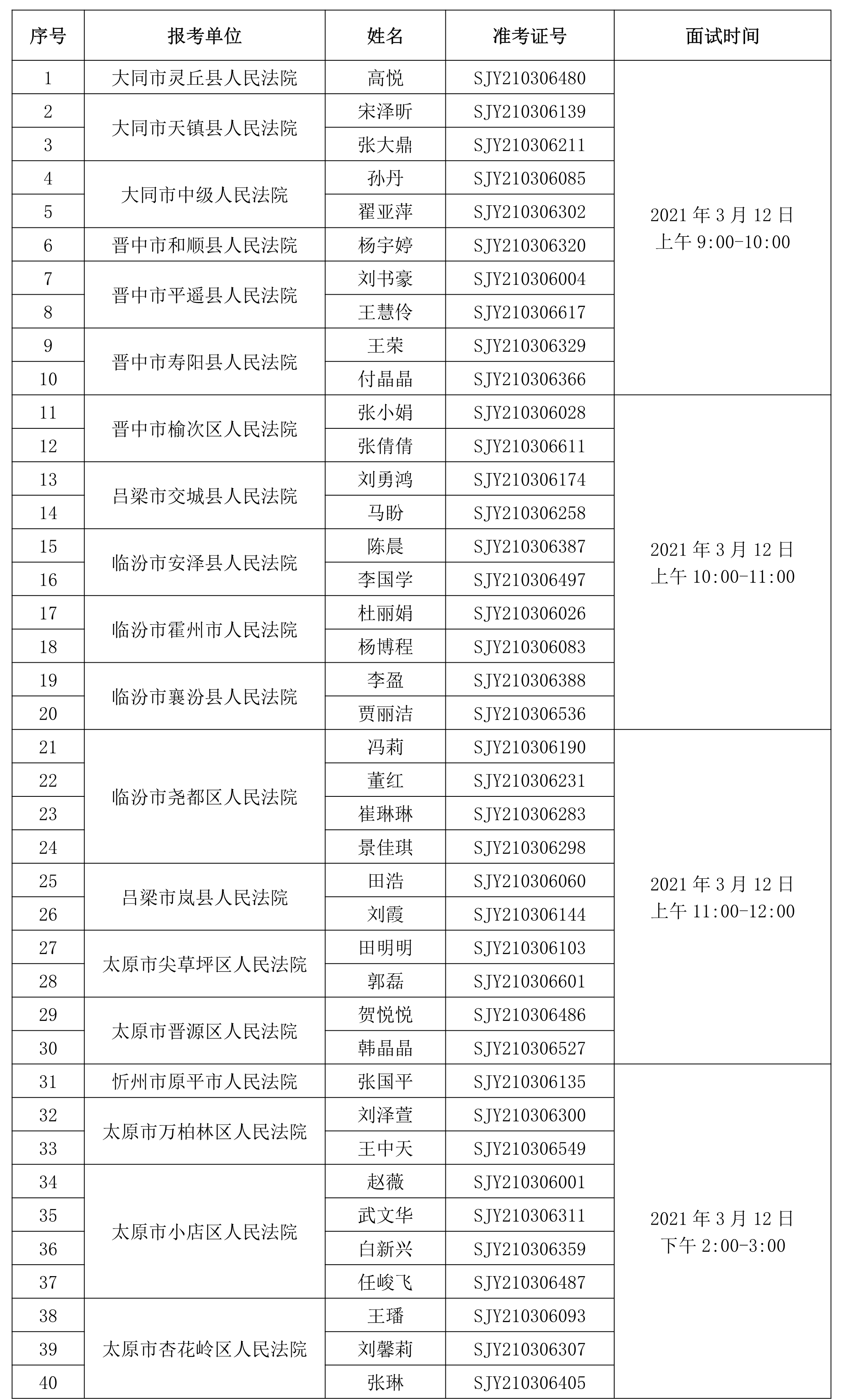 根据山西太阳成集团tyc138人力资源派遣有限公司于2021年2月7日发布的公开招聘39名书记员的相关要求,经过网上报名、资格审查、理论考试、速录技能测试等环节,现就面试有关事宜通知如下: