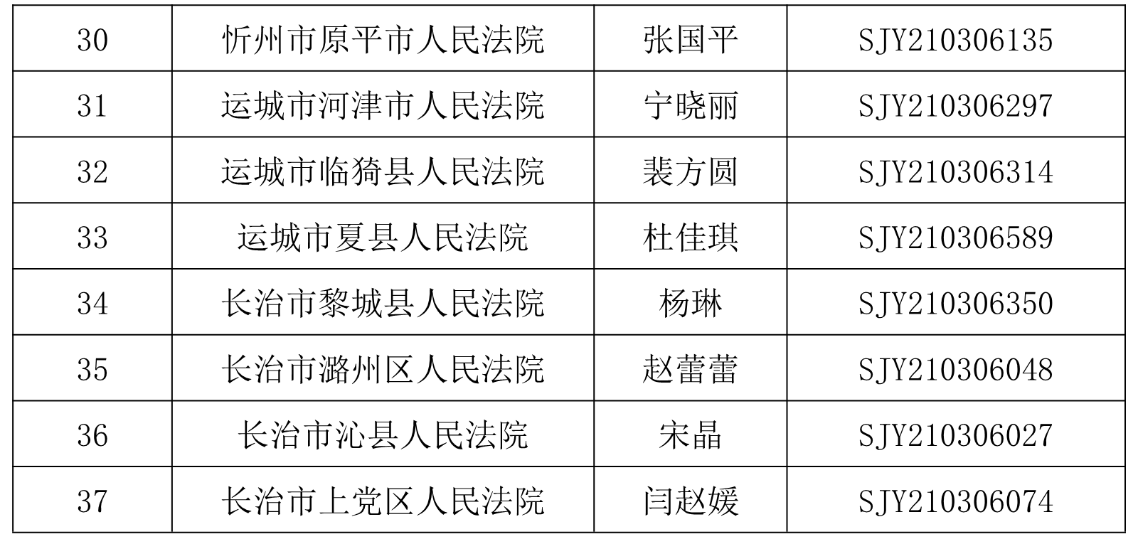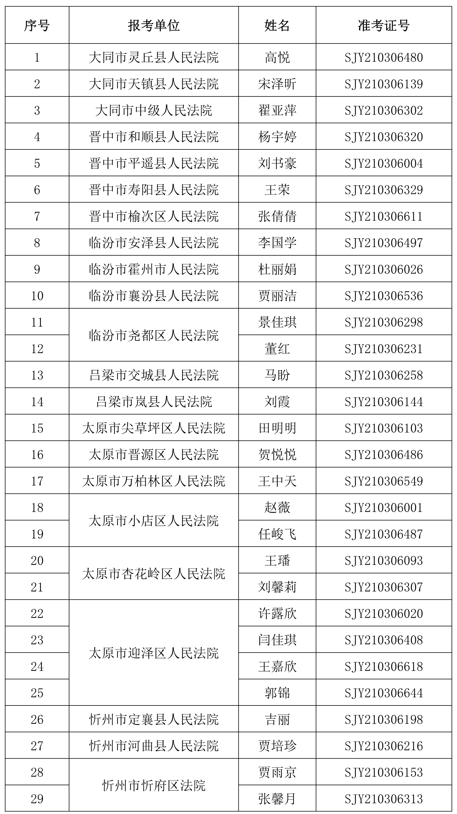 根据山西太阳成集团tyc138人力资源派遣有限公司于2021年2月7日发布的公开招聘39名书记员的相关要求,经过网上报名、资格审查、理论考试、速录技能测试、综合面试等环节,现确定37名入围体检人员,名单如下: