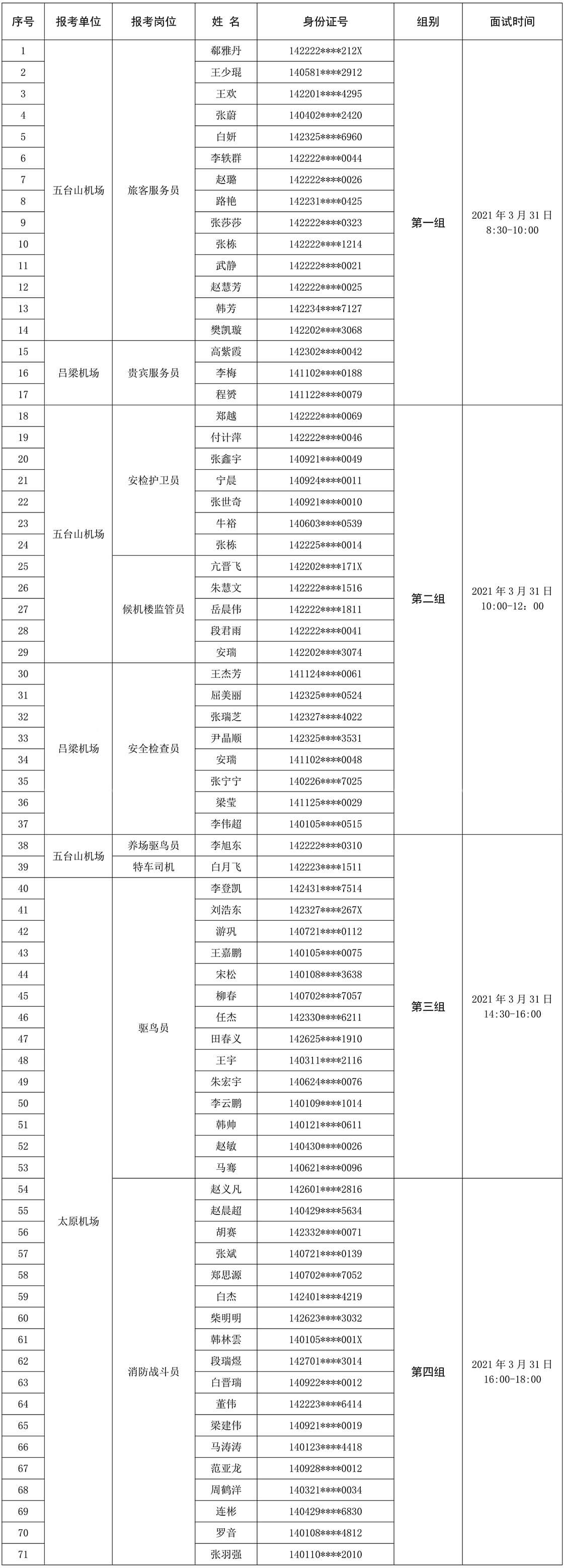 根据山西航产集团有限公司2021年公开招聘劳务派遣制工作人员的要求,现就面试有关事宜通知如下: