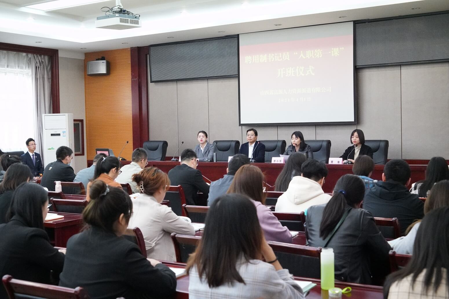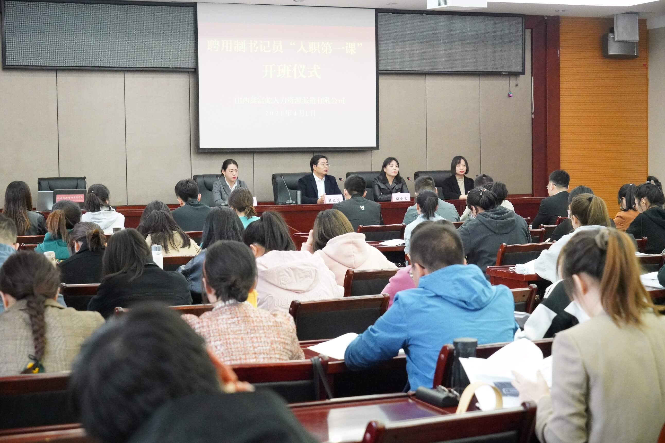 2021年4月1日上午,山西太阳成集团tyc138人力资源派遣有限公司在山西经济管理干部学院举行了新录用聘用制书记员初任培训开班仪式。公司董事长韩红光、总经理李小芳、党支部书记曹幸、工会主席刘莉,及101名新入职的聘用制书记员参加了开班仪式。