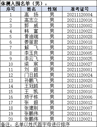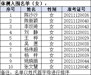 一、入围体能测评人员名单