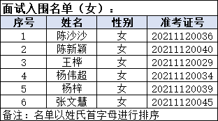 一、面试入围人员名单