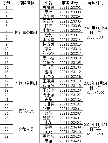 一、入围面试人员名单