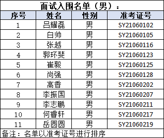 一、面试入围人员名单