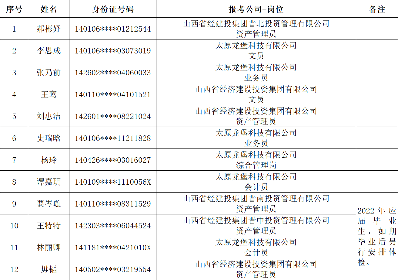 根据《山西省经济建设投资集团有限公司2022年度校园招聘简章》相关规定,现将复试成绩查询、体检等有关事项通知如下: