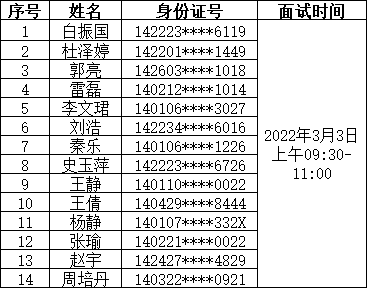 根据山西太阳成集团tyc138人力资源派遣有限公司于2022年2月10日发布的公开招聘12368诉讼服务热线坐席人员2名及储备人员5名的相关要求,经过网上报名、资格审查、理论考试等环节,现就面试有关事宜通知如下: