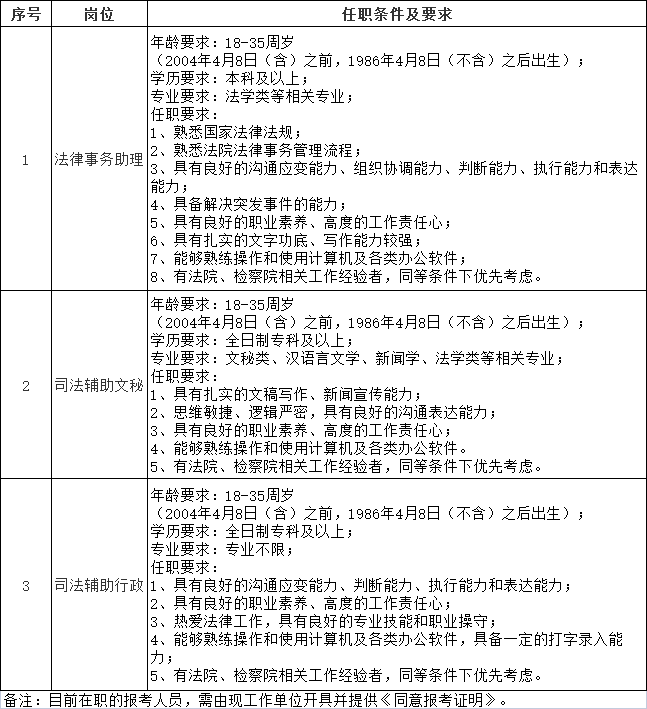 根据工作需要,山西太阳成集团tyc138人力资源派遣有限公司(以下简称:太阳成集团tyc138人力资源公司)受吕梁市方山县人民法院委托,面向社会公开招聘6名司法辅助人员,其中(法律事务助理2名、司法辅助文秘1名、司法辅助行政3名),现将有关事项公告如下: