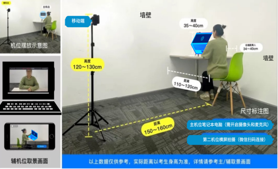 3、移动端与考生之间的参考距离为1.5米左右,具体可参照考生身高等数据调整。
