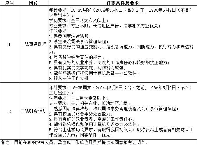 根据工作需要,长子县人民法院委托山西太阳成集团tyc138人力资源派遣有限公司,面向社会公开招聘 5 名司法辅助人员(司法事务助理 4 名、司法财会辅助1名),现将有关事项公告如下。